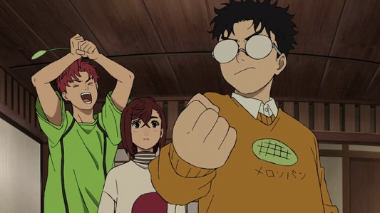 Momo and Okarun head to Jiji's house in a hot springs district to investigate the case of Jiji's family. Okarun feels gloomy looking at how close Momo and Jiji are. Arriving at Jiji's house, there are several shadows watching them as they enter...